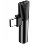 Audió és töltő adapter 2in1, elosztó, USB Type-C - USB Type-C töltő + 3.5 mm jack átalakító, 90 fokos/derékszögű csatlakozó, Baseus L41, fekete (RS120662)