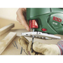 Bosch PST 650. Тип дръжка: Горна дръжка, Цвят на продукта: Черен, Зелен, Възможност за наклон (макс.): 45°. Скорост на празен ход (макс.): 3100 spm, Дълбочина на рязане в дърво: 6,5 см, Дълбочина на рязане в стомана: 4 мм. Захранване: Променлив ток (AC), Входна мощност: 500 W, Изходна мощност: 300 W. Тегло: 1,6 кг