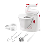 ETA ETA208990000 Ръчен миксер CUORE + купа, 350 W, 4 скорости, 2 екстра дълги бъркалки, 2 куки за месене, ръчен миксер от неръждаема стомана, захранващ кабел с дължина 1,3 м, бял/червен
