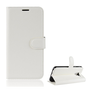 Калъф за телефон стоящ, кожен ефект (обърнат, странично отваряне, функция за държач на настолен компютър) Бял [Samsung Galaxy J6 (2018) J600F]