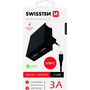 Комплект мрежово зарядно устройство Swissten Smart IC 2xUSB 3A + Кабел за данни Type C 1.2 м, Черен