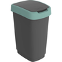 Кош за отпадъци Rotho Twist, капак на панти, черен - тъмно зелен, 25л