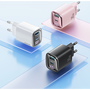 Мрежово зарядно 30W CC229, USB-C/USB-A, розово, за телефони и таблети